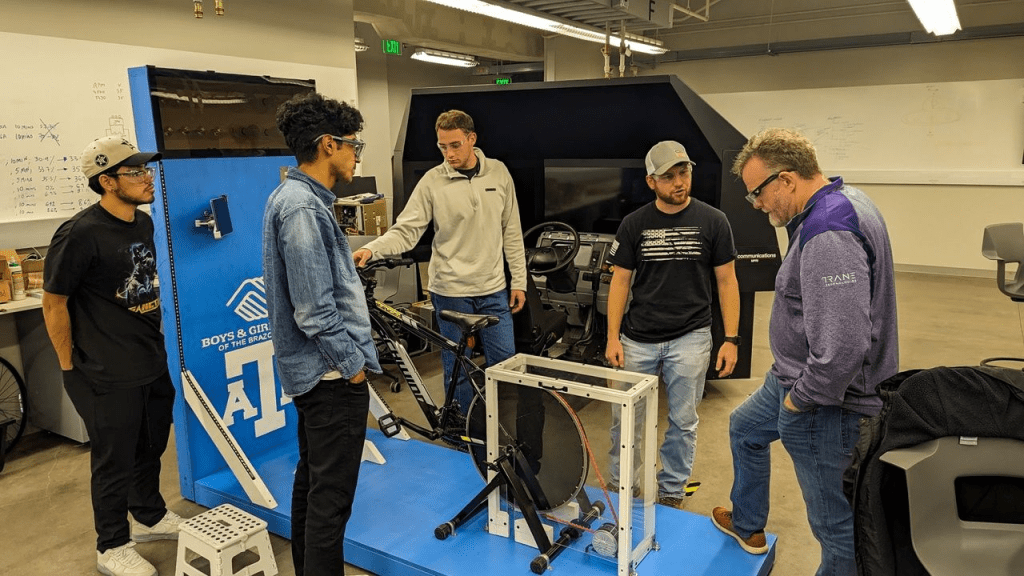 Pepito and his team designed and built “The ElectroCycle” for the Boys and Girls Club of Brazos Valley– an interactive display designed to spark curiosity in kids aged 8-12 about the fascinating world of energy conversion! The exhibit demonstrates the conversion process between human and electrical energy. Pedal away on the bike connected to a generator and watch as your energy powers lights and charges batteries!
