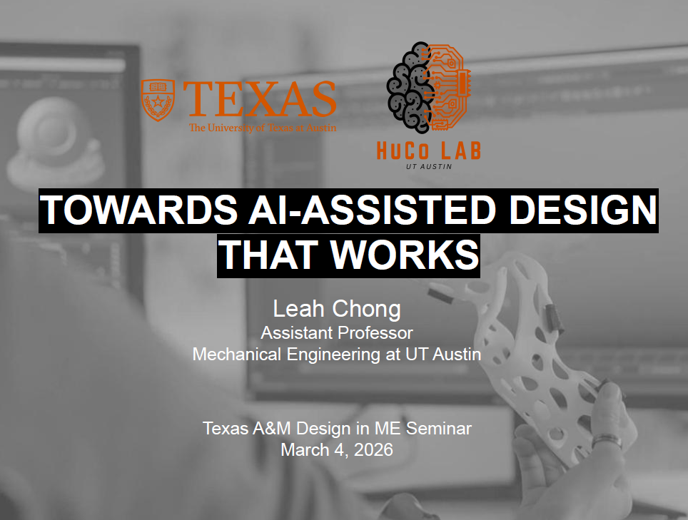For this week’s Engineering Systems Design (ESD) multi-group meeting we welcomed Dr. Leah Chong from UT Austin’s Mechanical Engineering department to present her work on AI-assisted design.