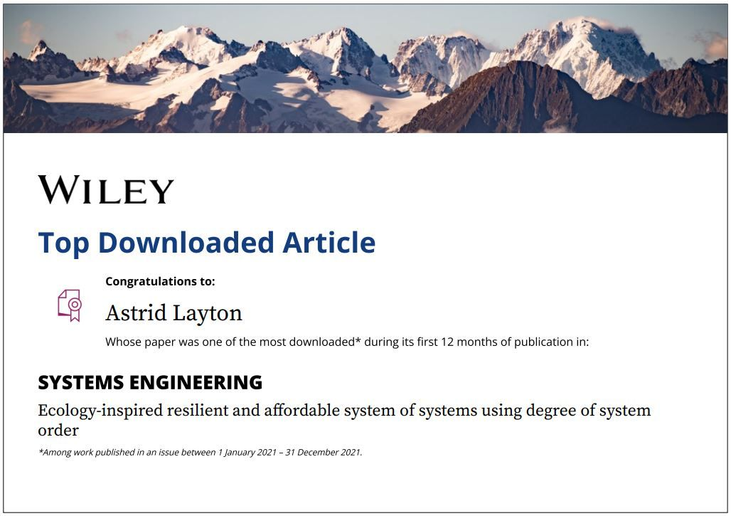 This special issue in the IEEE Open Journal of Systems Engineering seeks original papers to form a well-established body of knowledge on resilience in systems engineering and to aid in the pathfinding for innovative and long-term research. Extended Deadline, April 15. Guest editors include Drs. Astrid Layton (Texas A&M), Karen Marais (Purdue), Payuna Uday (Stevens).